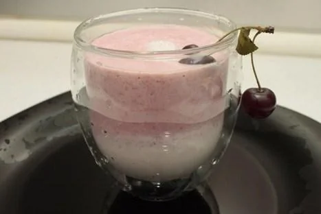 ШАГ 3 Для ягодного коктейля (отлично подходит для детей) молоко, мороженное и половину ягод необходимо смешать в емкости для взбивания. Полученную смесь для молочного коктейля следует взбить при помощи блендера и разлить по бокалам. Сверху каждый бокал следует украсить свежими ягодами вишни и подавать на стол.