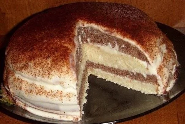 ШАГ 3 Испечь 2 коржа, остудить и разрезать ножом на 2 части.