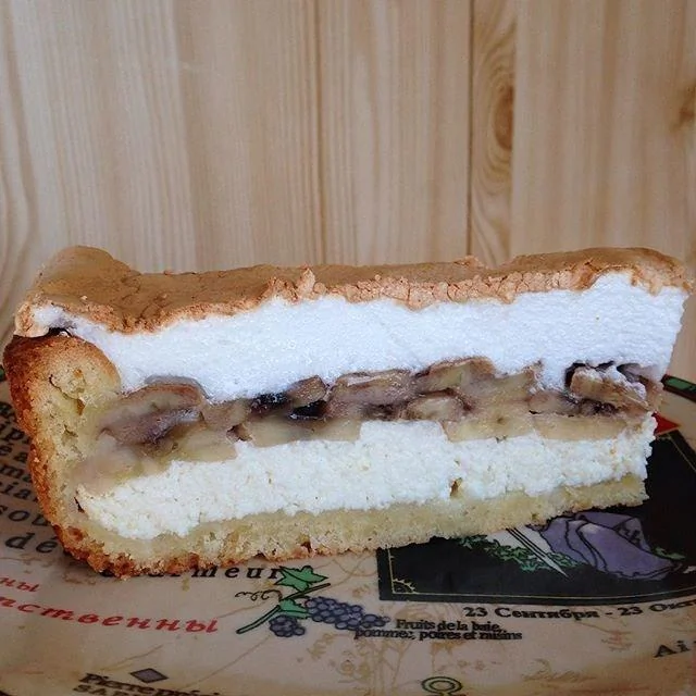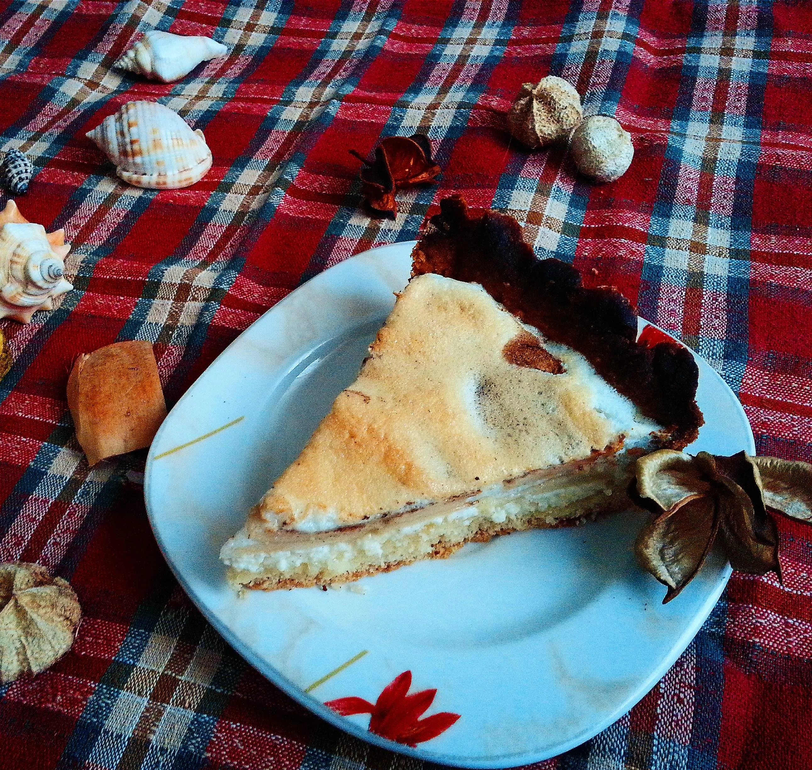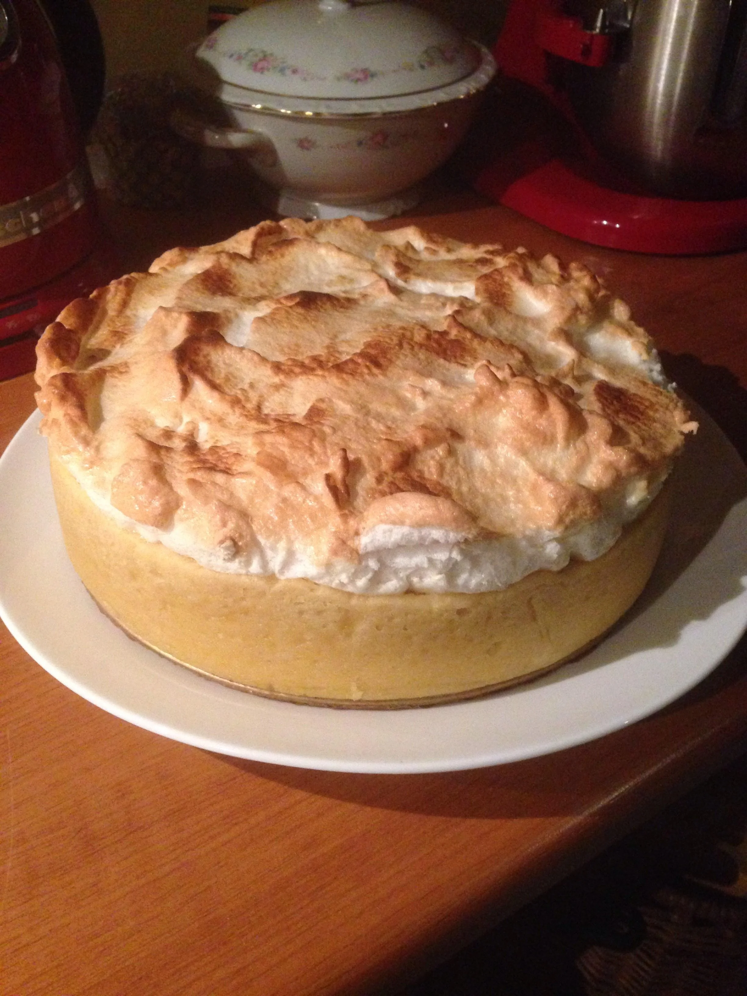 ШАГ 6 Вынимаем немного недопеченный пирог и укладываем белковую пену поверх яблок равномерно, разравниваем и снова ставим в горячую духовку. Когда через несколько минут белки схватятся светло-коричневой корочкой — пирог готов!!!