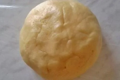 ШАГ 1 Масло 100 грамм, мука 150 грамм, сахар 50 грамм вилкой тщательно перемешать до получения крошкообразной массы. Добавить желток и руками замешивать до получения мягкого шарика. Завернуть шарик в полиэтилен и отправить в холодильник на час.