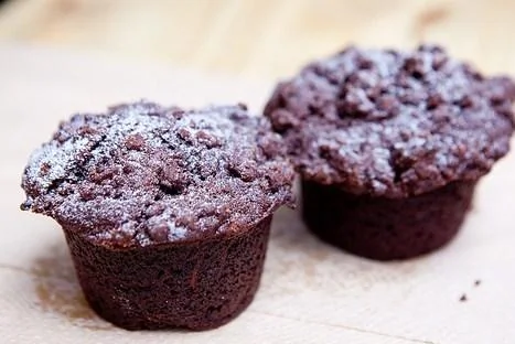 ШАГ 2 Масло разогреть в сотейнике, постоянно помешивая, до появления коричневого цвета. Добавить к смеси. Добавить чернику. Разлить по формочкам. Выпекать 15–20 минут. Посыпать сахарной пудрой.