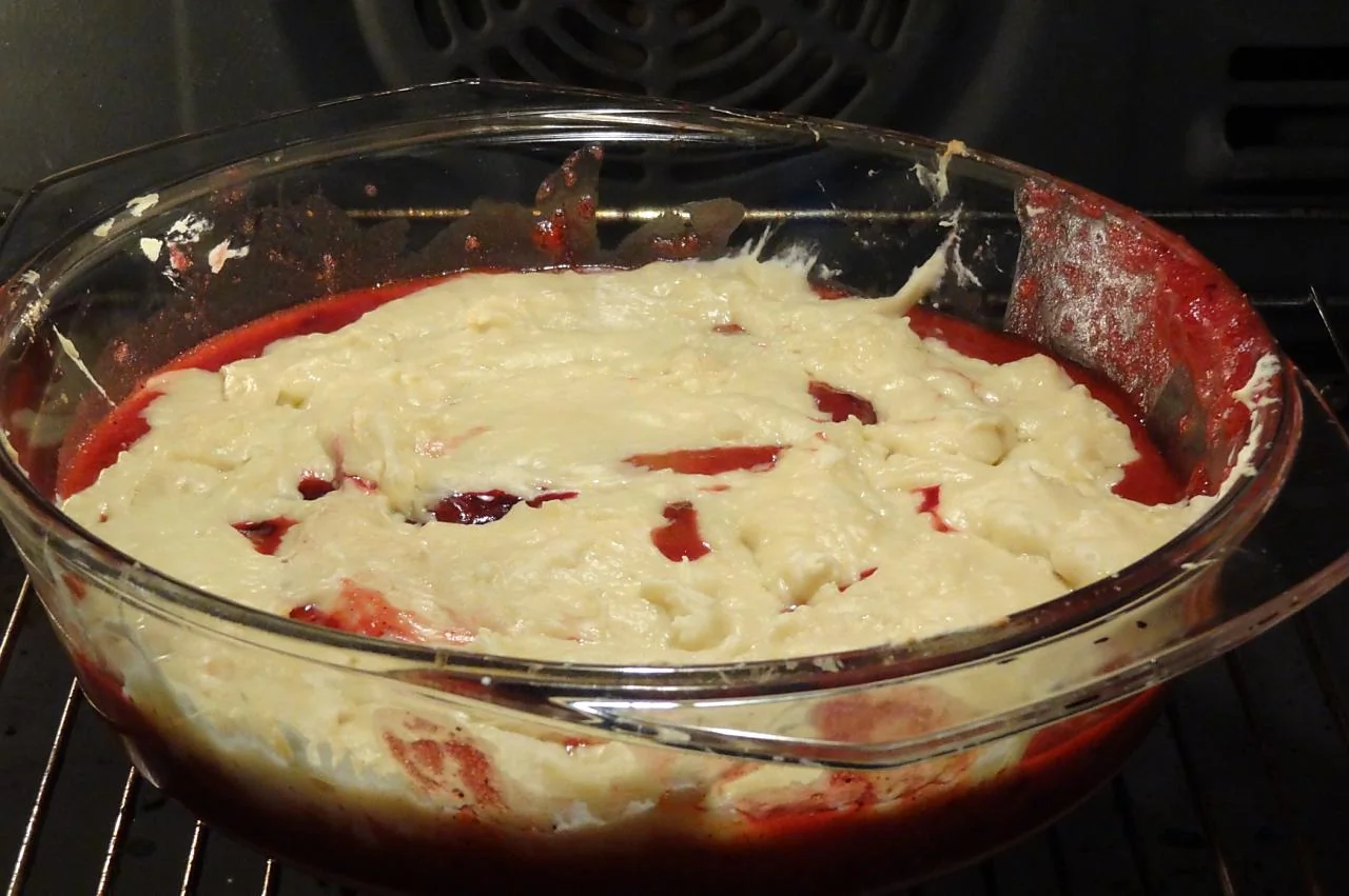 ШАГ 9 Форма не должна быть слишком широкой, иначе тесто выдавит начинку. Другим словами, слоя ягодной смеси должен быть достаточно толстым, чтобы на него можно было выкладывать тесто.