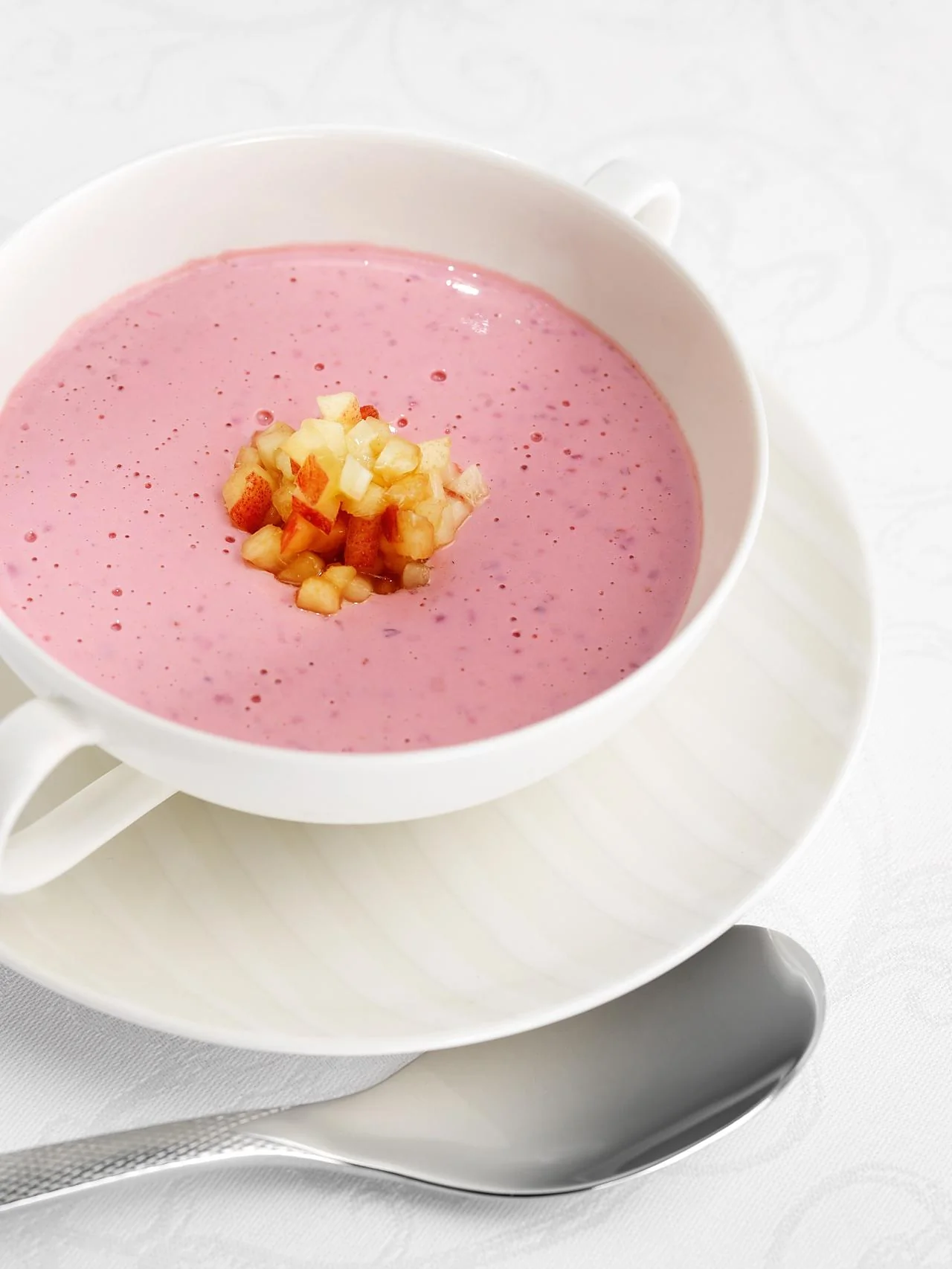 ШАГ 2 Перед подачей добавить в мусс немного мелко нарезанной мякоти слив.