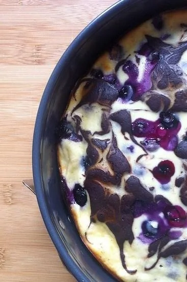 ШАГ 3 Смородину превратите в пюре, смешав с 200 г сахара. Добавьте творог, йогурт и яйцо. Хорошенько взбейте и вылейте поверх теста.