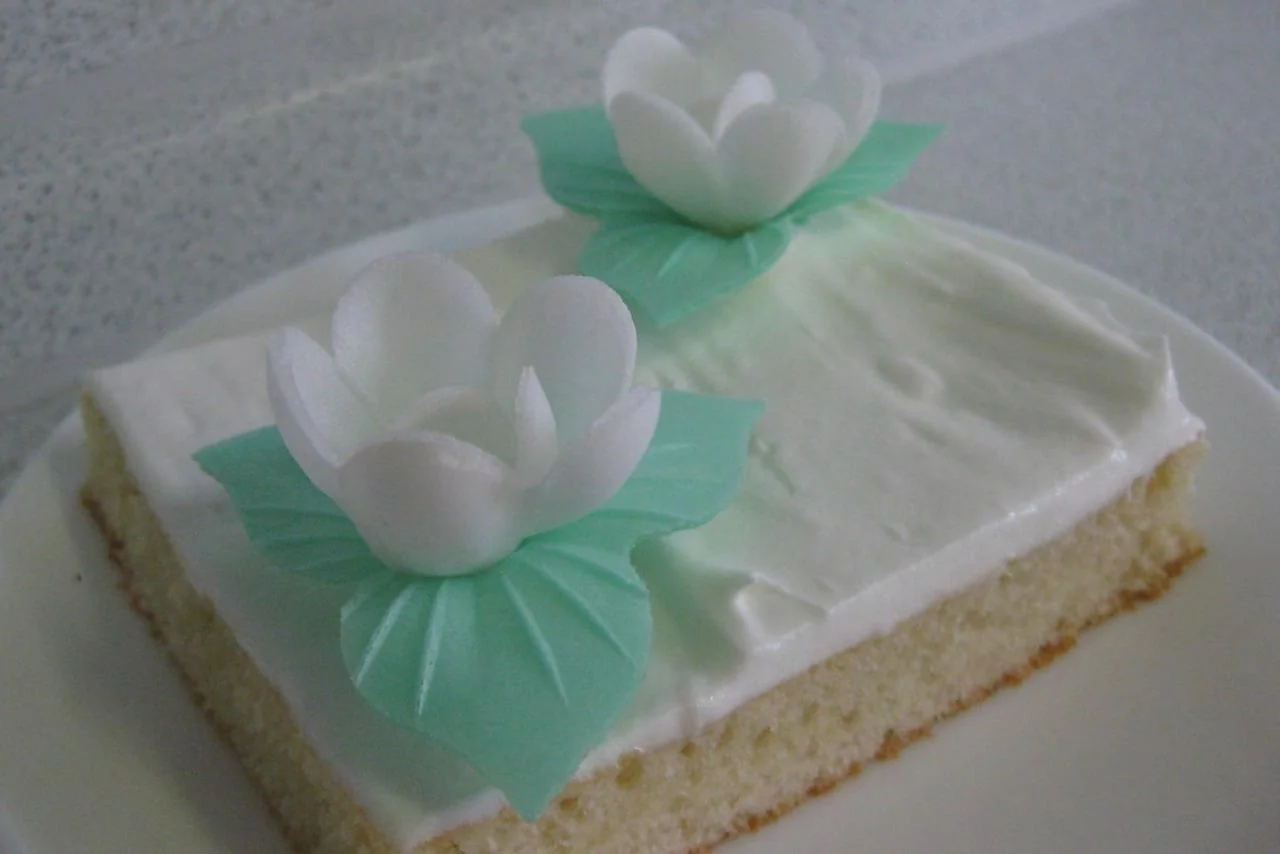 ШАГ 4 Для начинки дать абрикосам хорошо стечь на сите. Крем приготовить с молоком, сахаром и сливочным маслом в соответствии с инструкцией на упаковке. Готовый крем намазать на остывший корж, сверху разложить абрикосы или украсить вафельными цветочками (маргаритками или розочками).