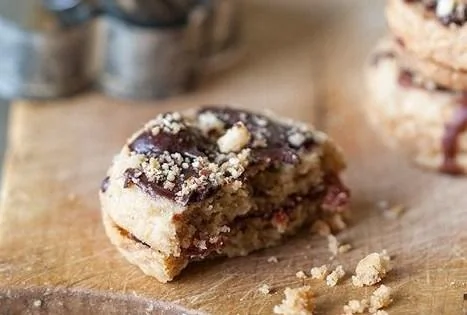 Пшеничная мука Сливочное масло Коричневый сахар Лимонная цедра Лесные орехи Клубничное варенье Горький шоколад Гвоздика Соль Корица Выпечка и десерты Европейская кухня Печенье