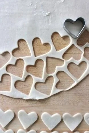 ШАГ 2 Из второго пласта вырезать очень много сердечек.