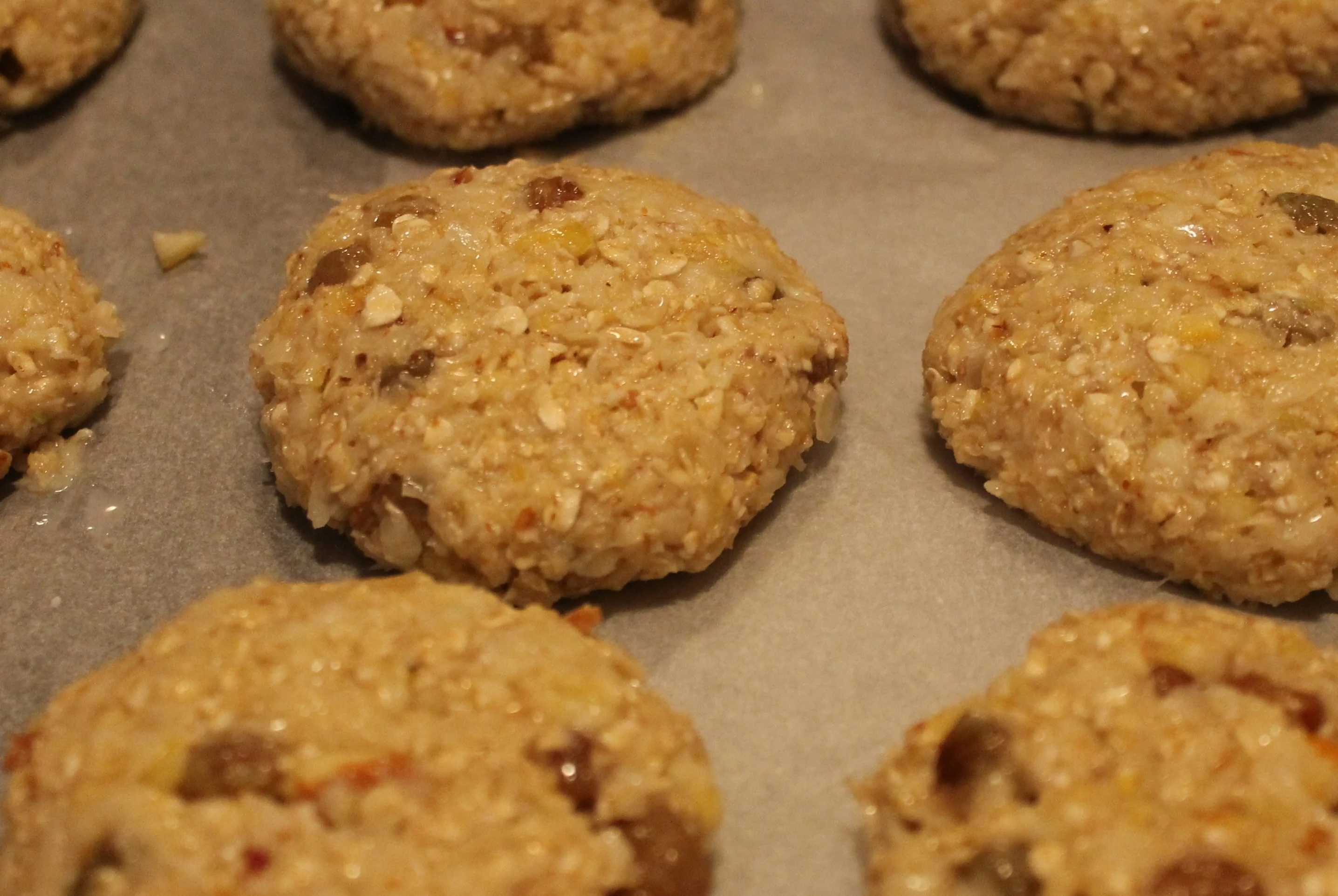 ШАГ 8 Мочим руки в холодно воде, столовой ложкой набираем овсянку «с горкой», отжимаем ее (тесто остается рассыпчатым, как хлопья) и лепится, как пластилин (слегка отжимаем/сжимаем и лепим), скатываем из него шарики, потом их слегка приплюскиваем и выкладываем на противень.