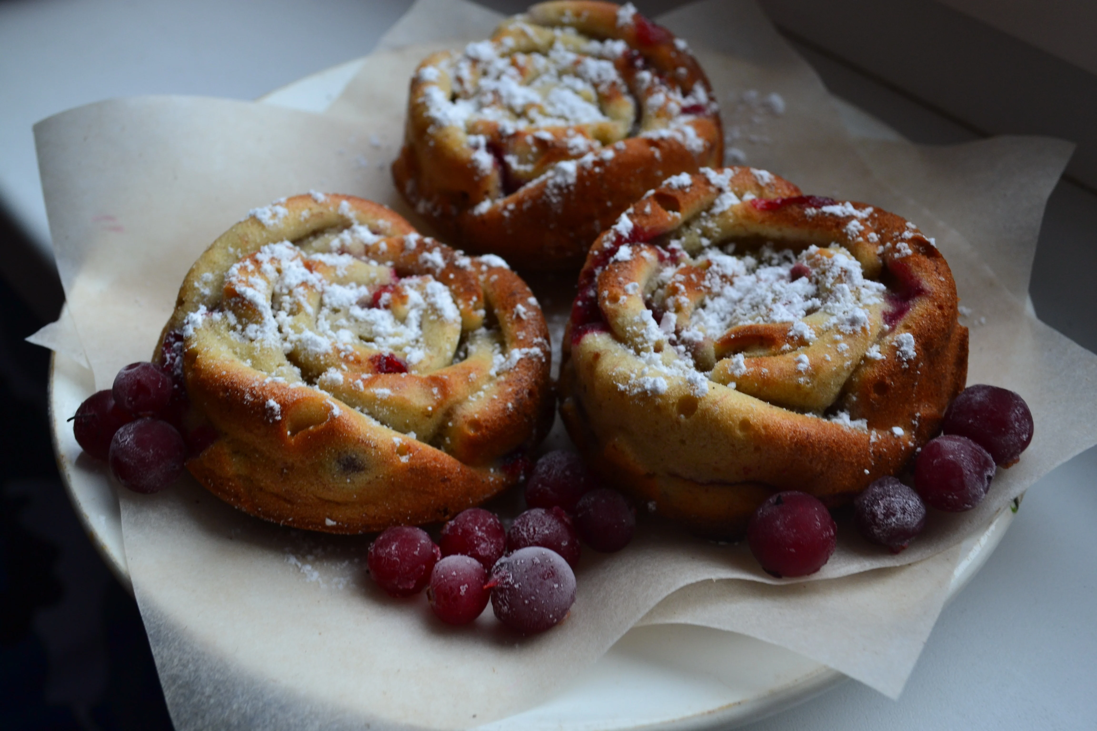 ШАГ 7 Вулканические разломы с красным ягодным соком на поверхности маффина и так выглядят живописно. Но можно еще посыпать сверху коричневым сахаром (сырые) или сахарной пудрой (после выпечки).