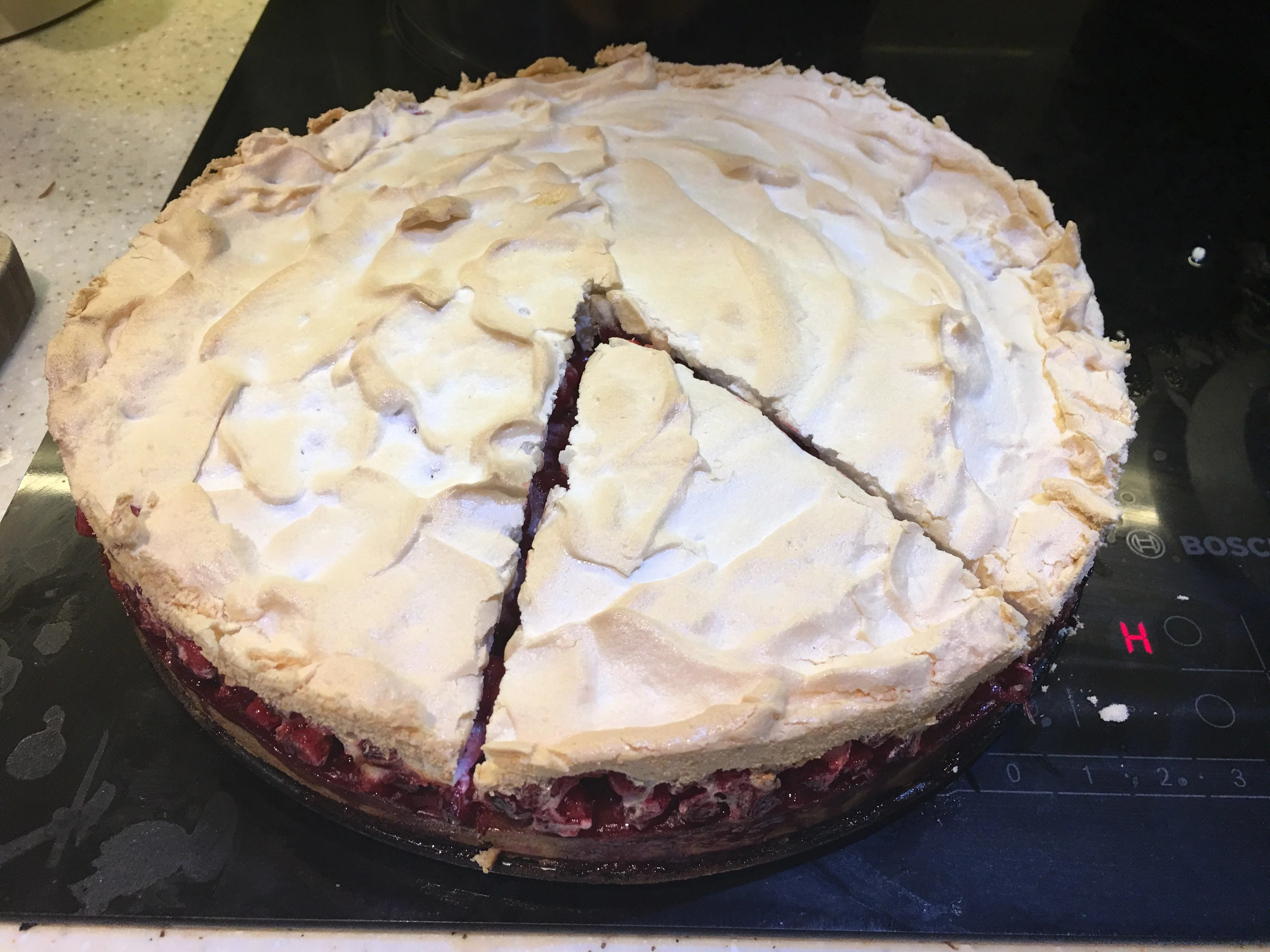 ШАГ 6 2/3 белковой массы смешать с брусникой, выложить на корж. Сверху выложить оставшийся белок.