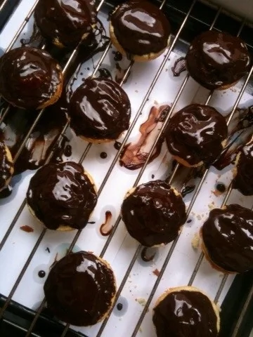 ШАГ 10 Смазываем сливочным маслом 7 формочек для тарталеток (кексов, это не имеет значения) и выкладываем в каждую по 1 столовой ложке получившегося теста. Выпекаем примерно 10 минут до золотистого цвета, затем достаем и перекладываем на решетку.
