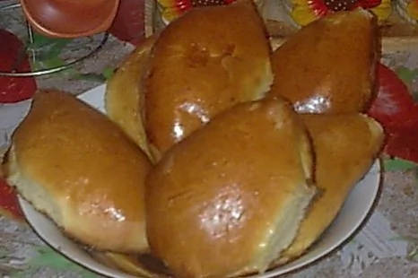 ШАГ 5 Выложить пирожки на противень, застеленный пергаментной бумагой. Смазать взбитым желтком или молоком.