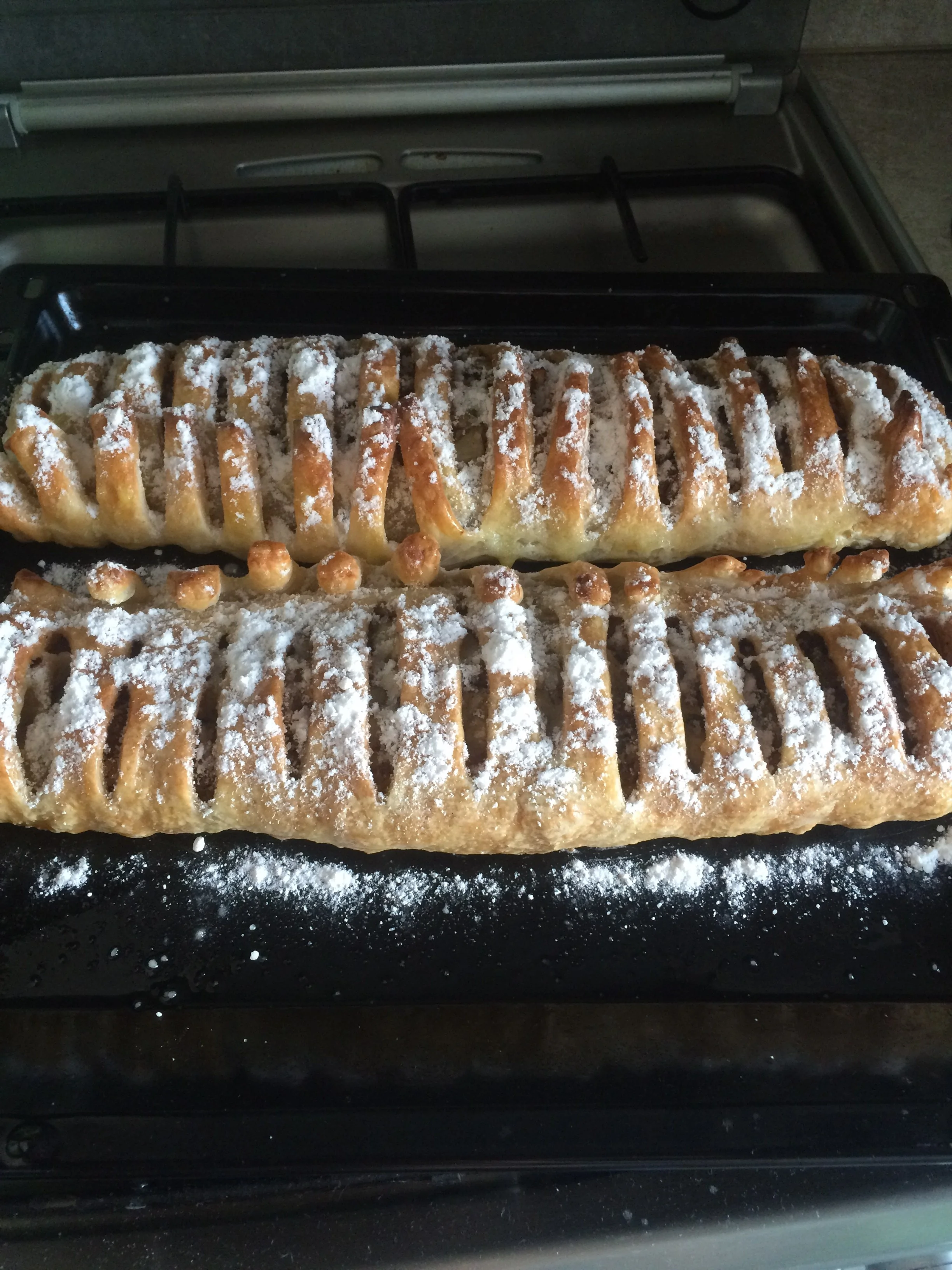 ШАГ 12 Затем переложить положенный на пергамент штрудель в духовку, противень стоит разместить по центру печи.
