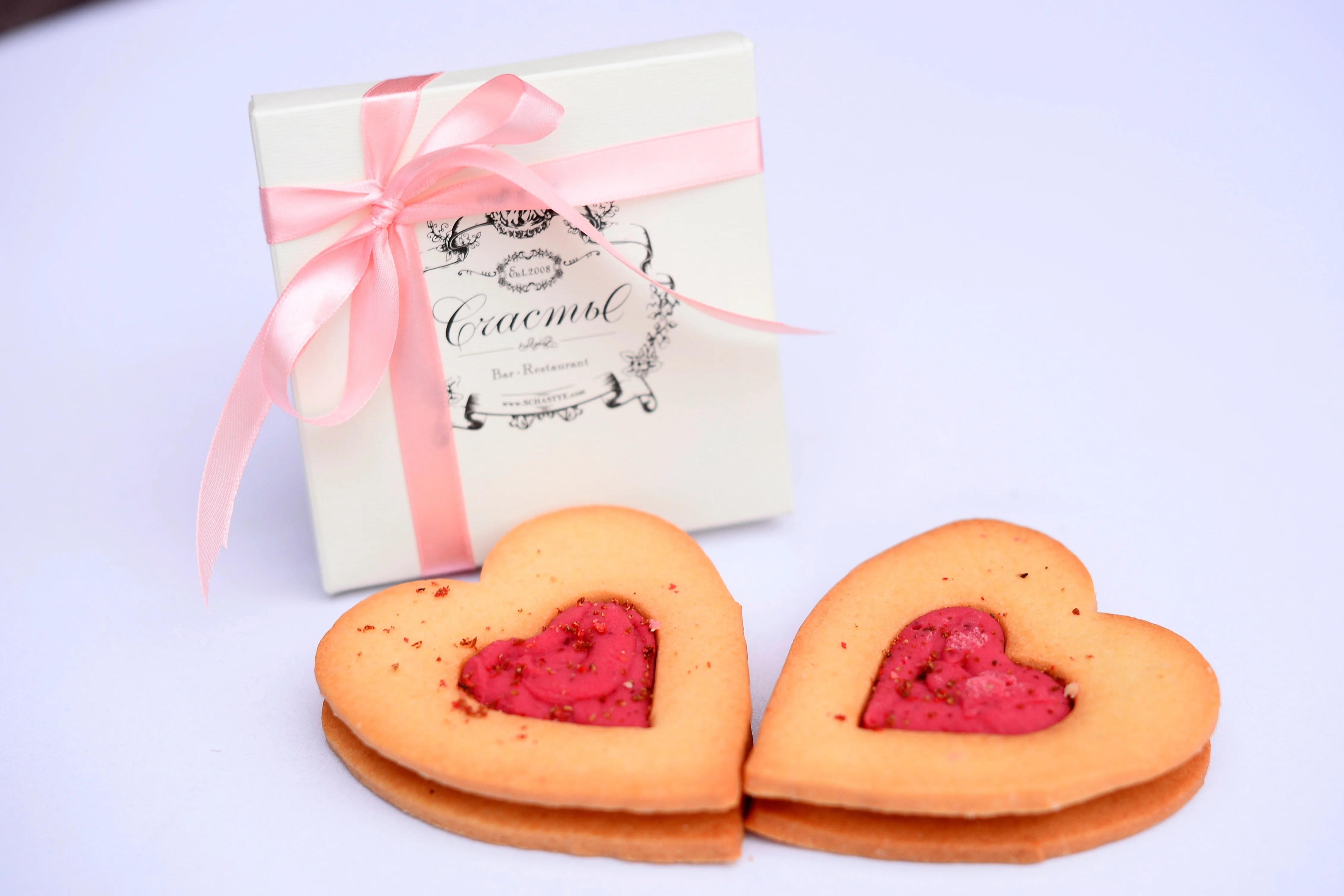 ШАГ 2 После поместить тесто между двух пергаментов и раскатать до 3 мм. Кондитерской формой вырезать два сердца массой 37 г. В одном из них вырезать еще одно сердце меньшего размера. Лист для выпекания застелить пергаментом и разложить на нем сердца на небольшом расстоянии.