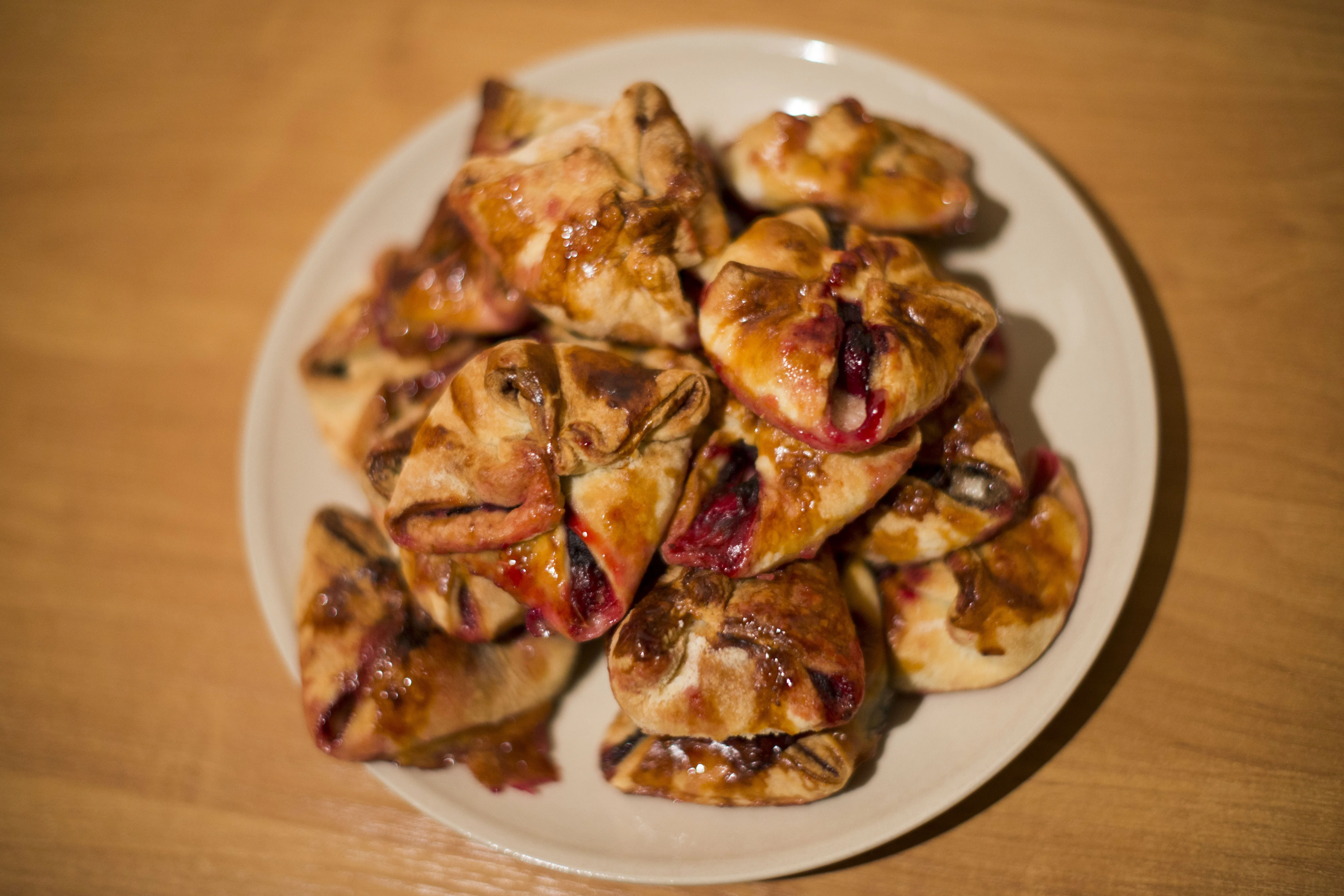 ШАГ 3 Свернуть тесто в конвертики. Каждый конвертик смазать яйцом.
