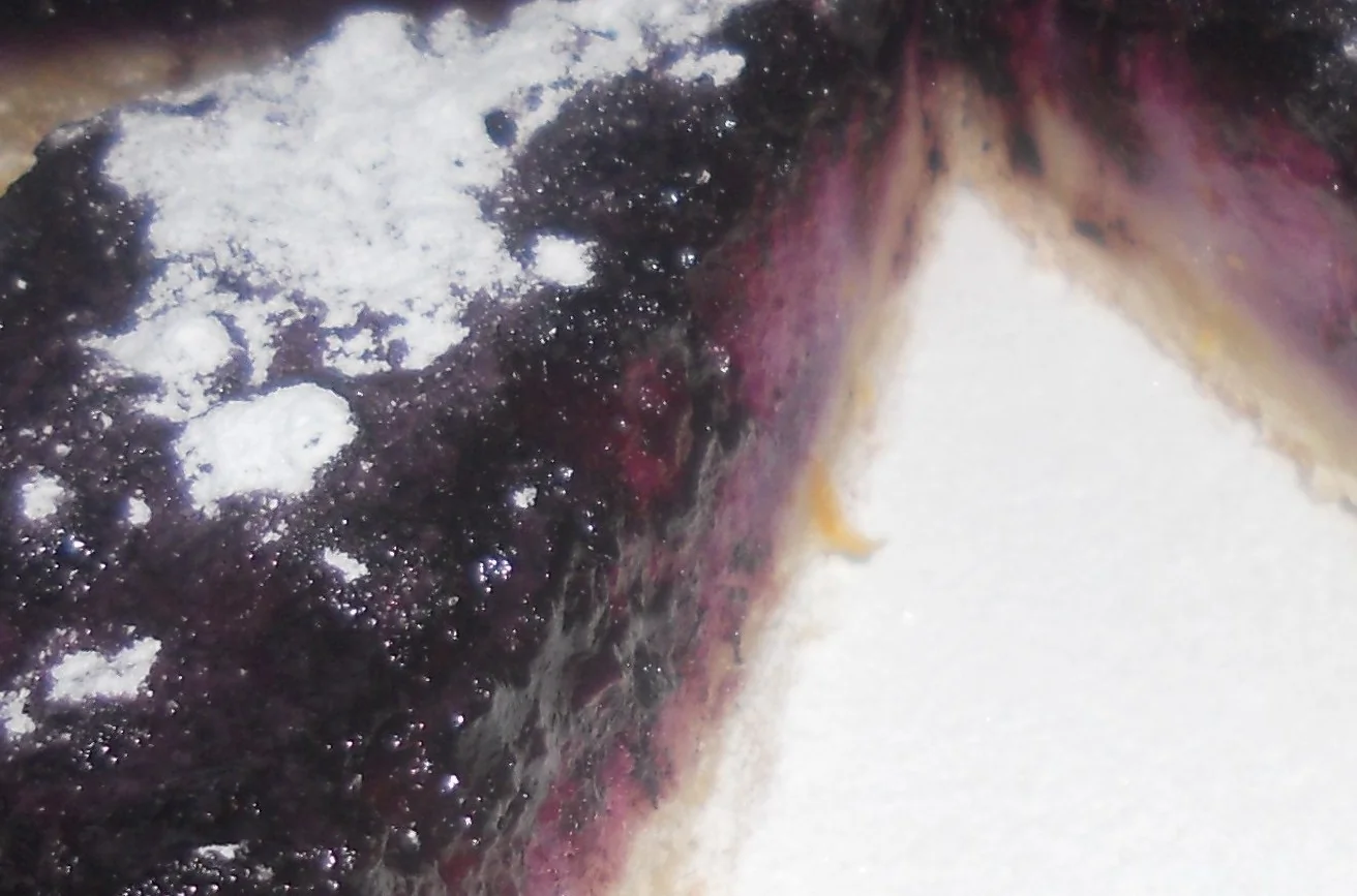 ШАГ 5 Тем временем, готовим начинку. Для этого смешиваем венчиком жидкие части и цедру, подмешиваем муку и пудру, начинку выливаем в песочную форму, на жидкую начинку высыпаем размороженную чернику, посыпаем ее по вкусу сахаром и отправляем еще на 15–20 минут в духовку.