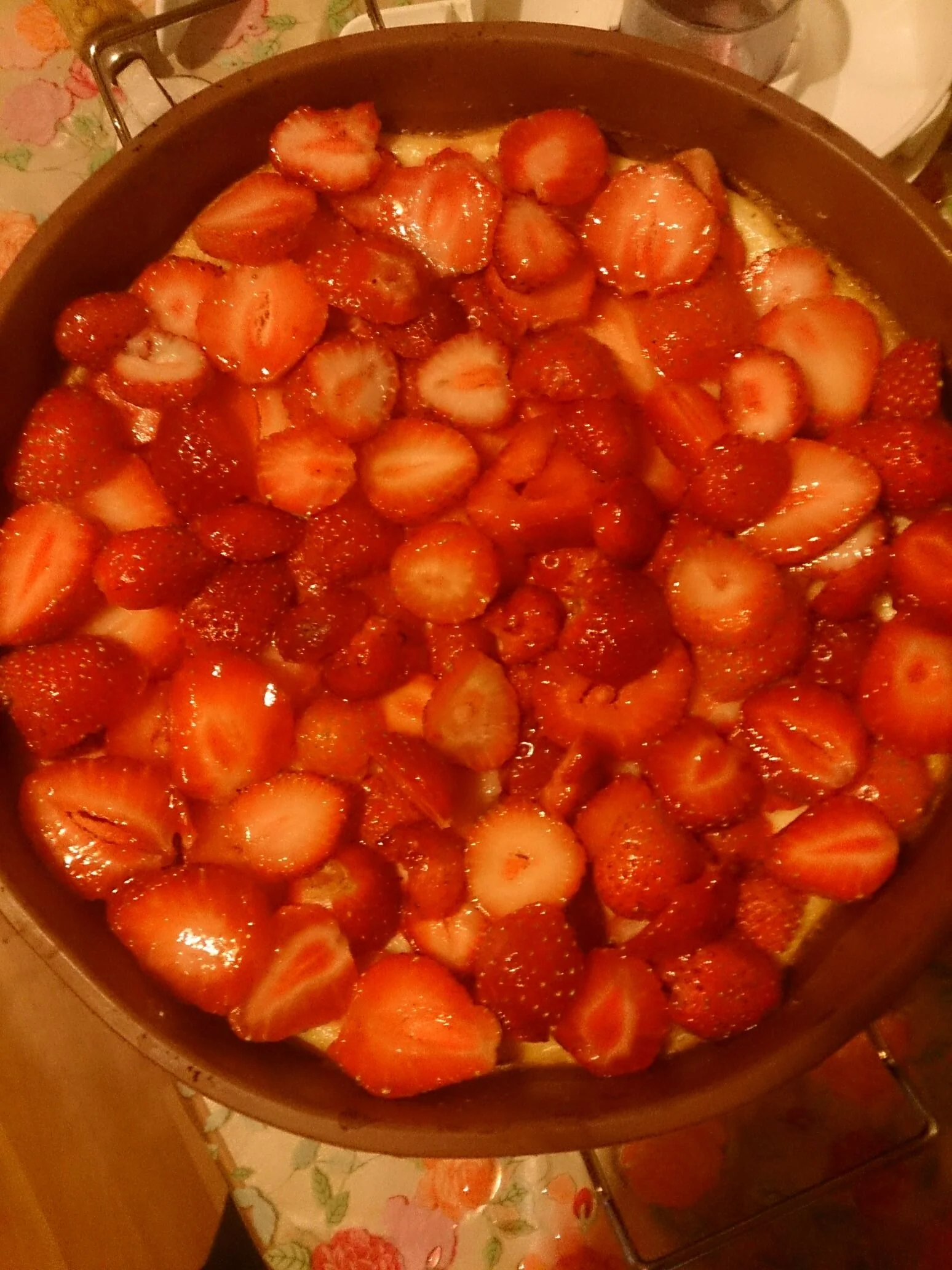 ШАГ 5 Слить сок из банки, дать клубнике намного высохнуть и аккуратно выложить ее на чизкейк. Затем убрать его в холодильник на ночь.