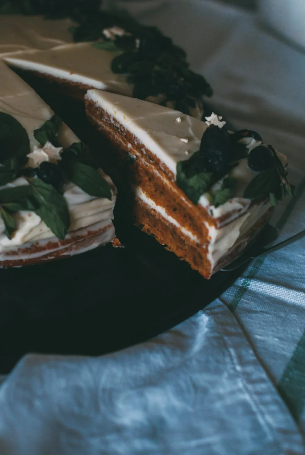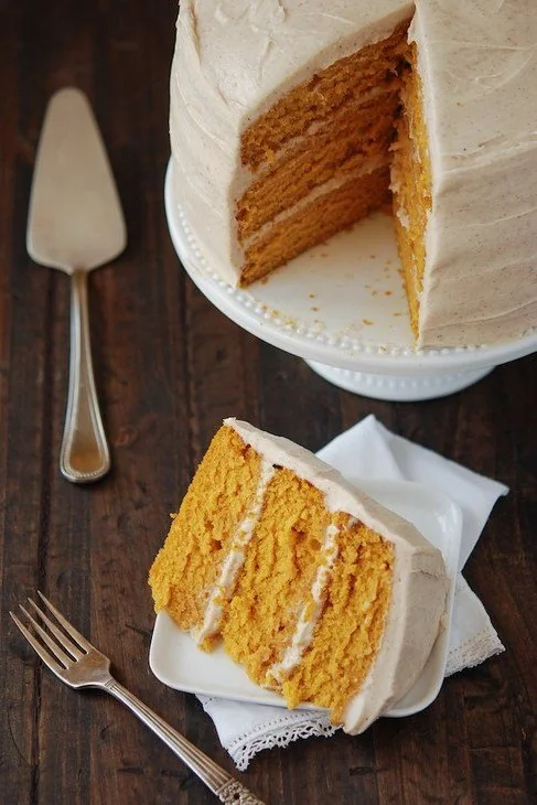 ШАГ 4 Для крема смешайте сливочное масло, творожный сыр, сахарную пудру и ваниль. Взбивайте до получения крема. Украсьте кремом остывший пирог, сверху по желанию добавьте еще орехов.