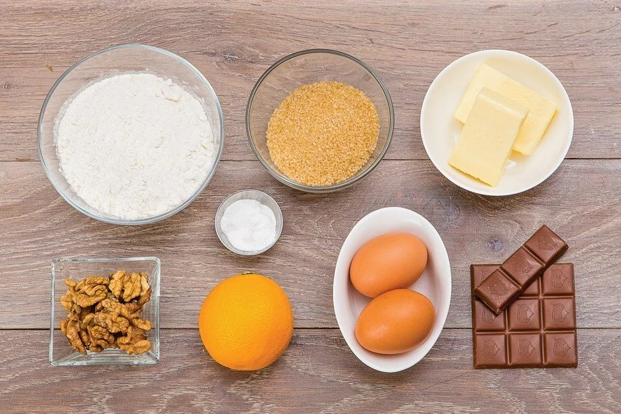 Ингредиенты для приготовления Апельсиновый брауни с грецкими орехами: