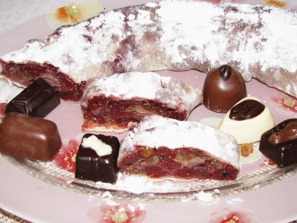 ШАГ 8 Кладем в смазанную маслом форму для запекания. Готовый штрудель смазываем растопленным