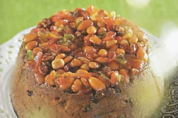 ШАГ 2 Взбейте масло с сахаром в пышный крем. Взбивая, частями добавляйте яйца. Введите муку, затем добавьте сухофрукты, орехи, цукаты, фисташки и имбирь. В конце подмешайте в тесто апельсиновую воду, цедру и сок цитрусов. Замешивайте тесто до однородности (оно должно быть довольно рыхлым) и переложите в подготовленную форму. Разровняйте поверхность и пеките 30 минут. Уменьшите температуру духовки то 150 градусов и пеките еще 1 час 45 минут. Кекс должен получиться плотным и золотистым, проверьте готовность деревянной палочкой (или зубочисткой). Оставьте кекс в форме минимум на час, затем переложите на решетку остывать.