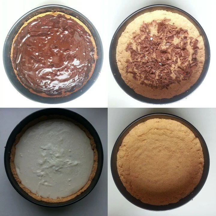 ШАГ 1 Готовим основу для чизкейка. Измельчаем печенье. Добавляем 100 г масла, смешиваем до однородной массы. Выкладываем в форму, придавливаем, делаем бортики около 4 см. Убираем в холодильник.