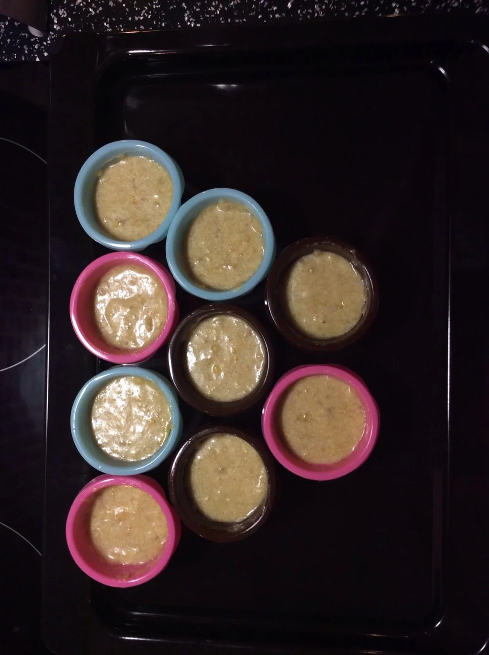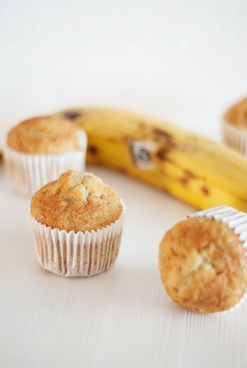 ШАГ 2 Добавить мучную смесь к банановой, вымешать до однородности и распределить по формам, выстеленным бумажными формочками, заполняя их на три четверти. Выпекать при 180 градусах 20–25 минут до готовности в зависимости от размера. Готовность проверить зубочисткой.