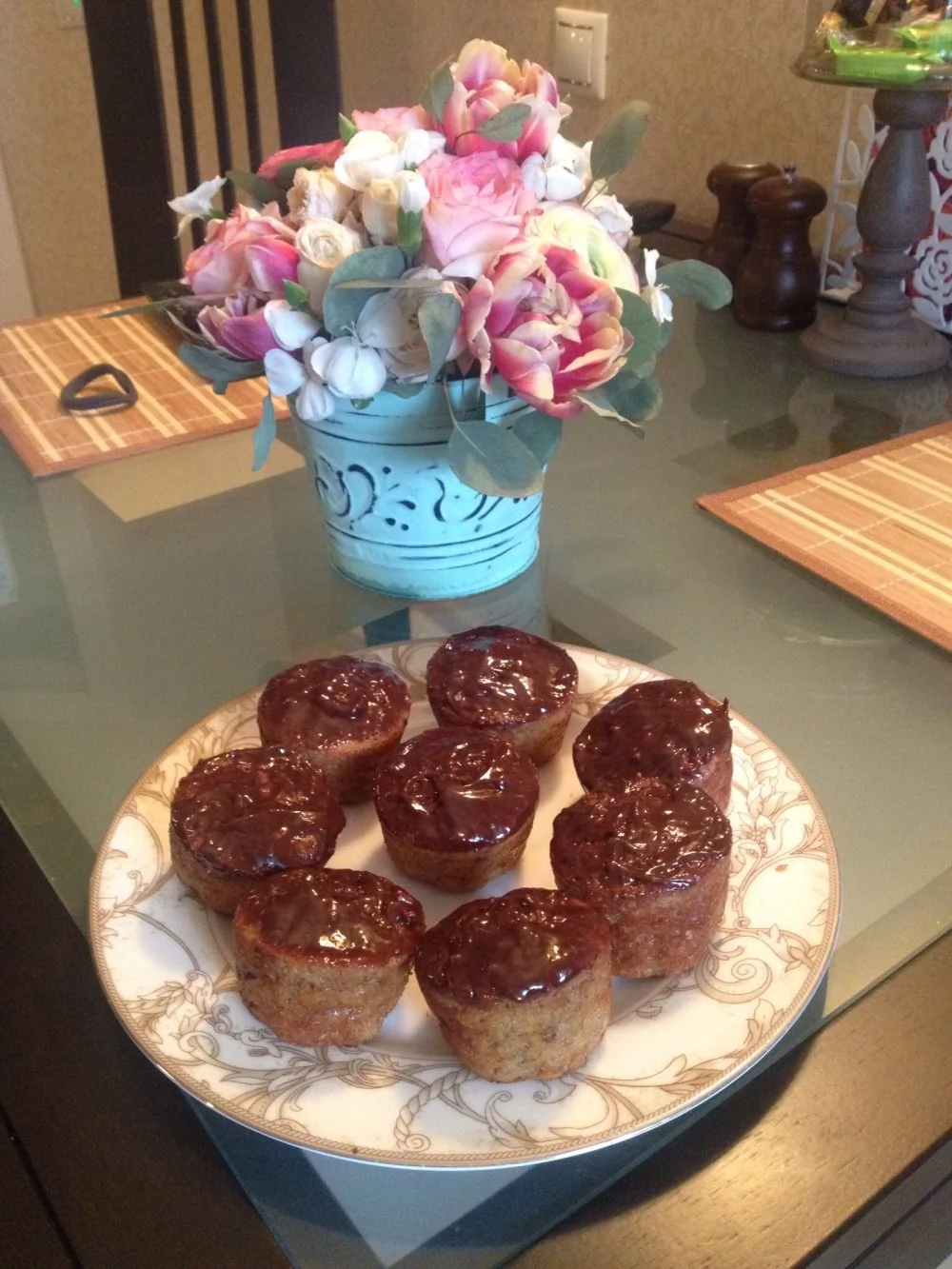 ШАГ 3 Готовые капкейки можно украсить шоколадной глазурью: банан и шоколад — отличное сочетание. Для этого нужно растопить шоколад на водяной бане, немного остудить и аккуратно окунуть верхушку каждого капкейка в шоколадную массу.
