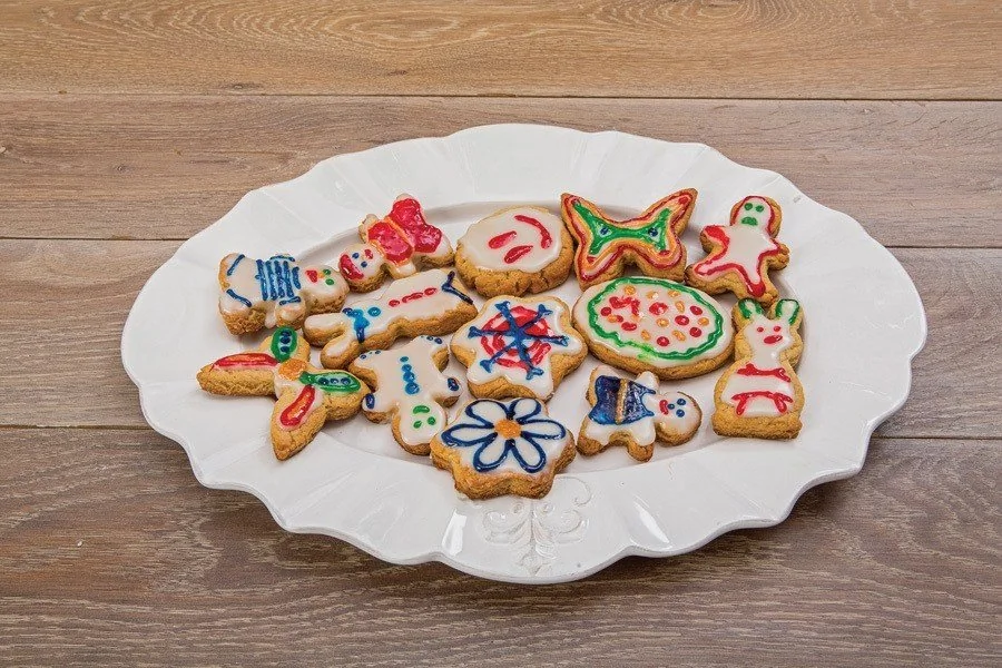 ШАГ 7 Смажьте печенья глазурью, дайте подсохнуть, раскрасьте печенье с помощью карандашей с красителями; можно сделать отверстие для ленточки и повесить печенье на елку.