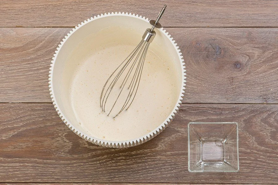 ШАГ 3 Слегка взбейте яйцо, добавьте сахарный сироп и взбивайте венчиком, пока смесь не загустеет.