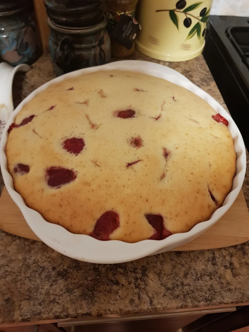 ШАГ 3 На форму для запекания выложить ягоды, залить тестом.