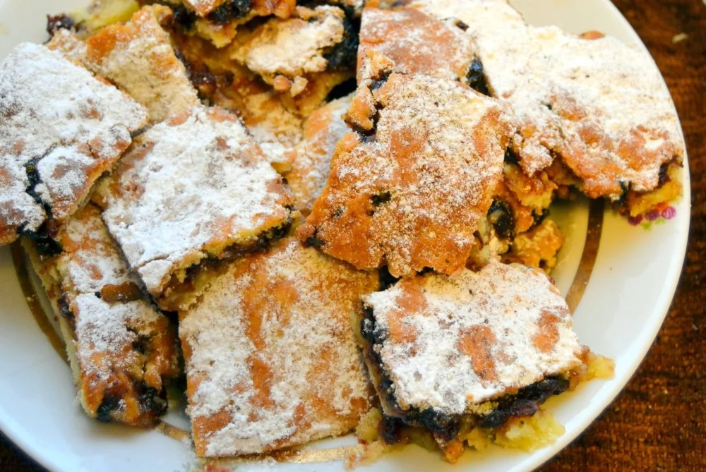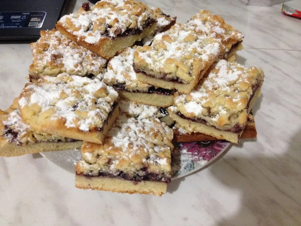 ШАГ 6 Достать из духовки и нарезать на небольшие квадраты, выложить на тарелку, сверху посыпать сахарной пудрой.