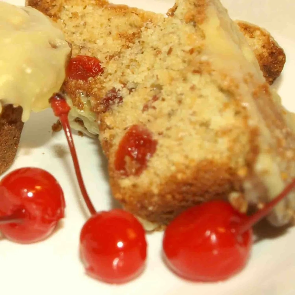 Кекс с сушеной вишней и ганашем из белого шоколада