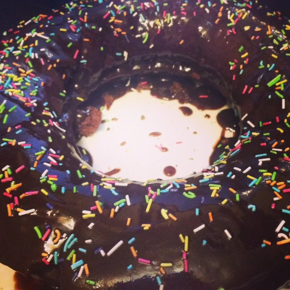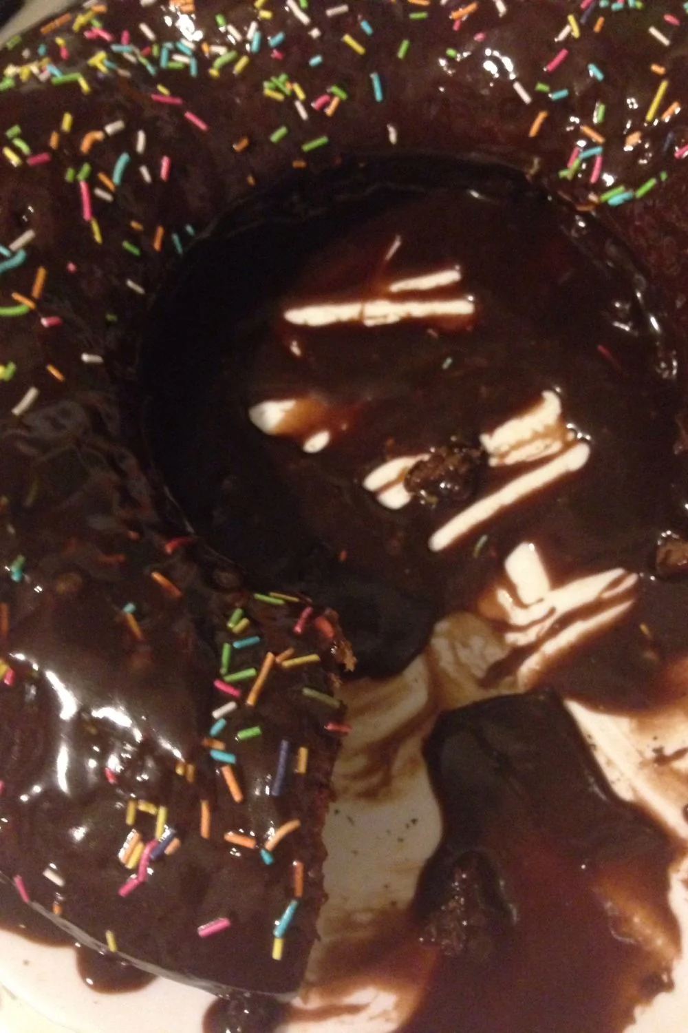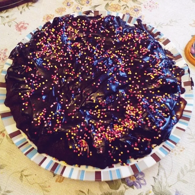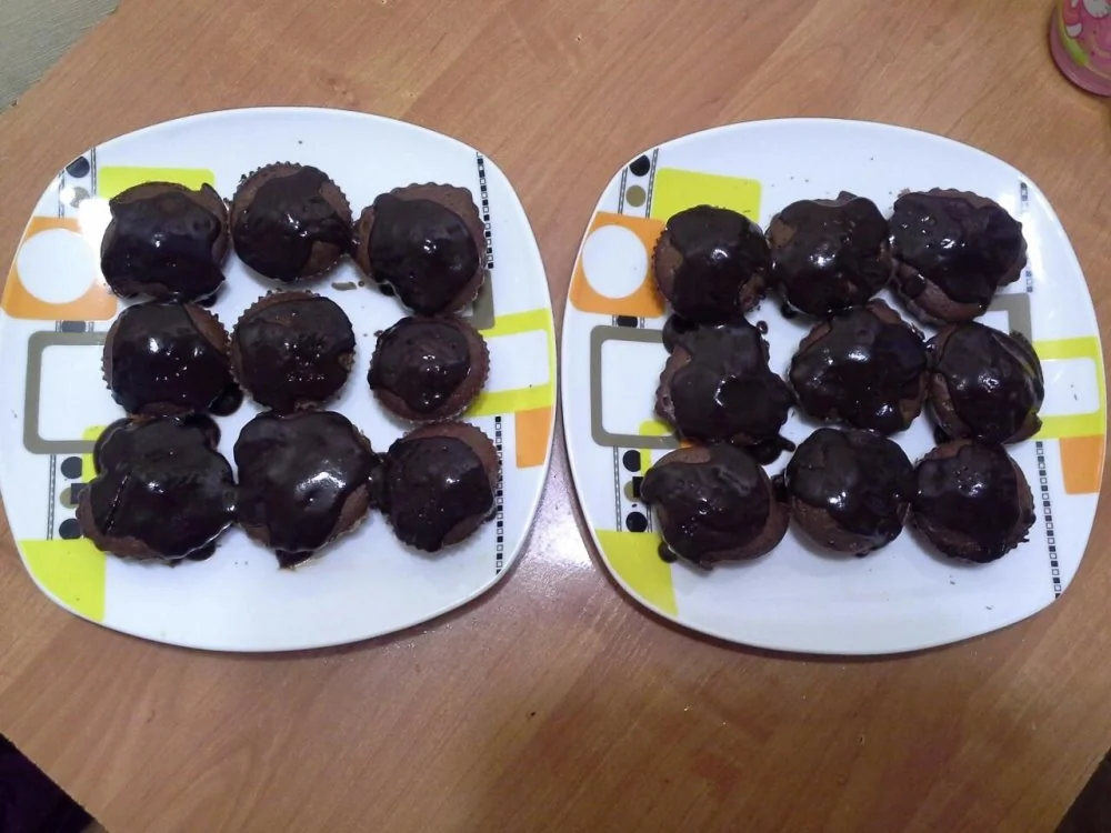 ШАГ 3 Готовый кекс выложить на блюдо, полить соусом, можно еще разрезать и промазать внутри.