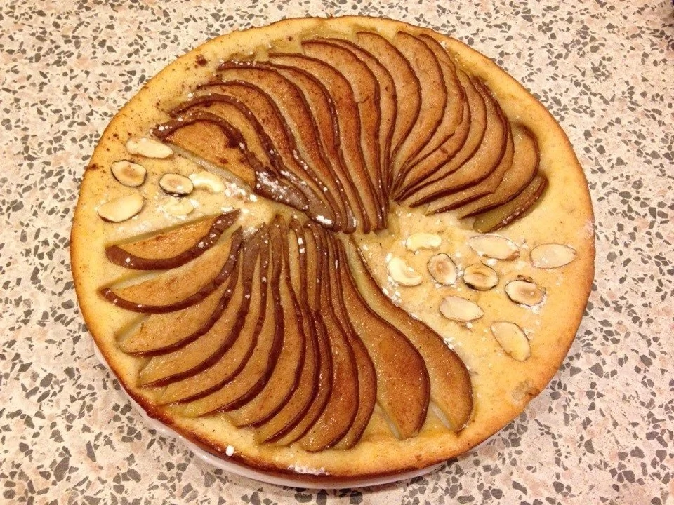 ШАГ 4 Груши очищаем от шкурки и семечек, нарезаем и вставляем в тесто. Кекс ставим в разогретую до 180 градусов духовку примерно на час. Готовность проверяем зубочисткой.
