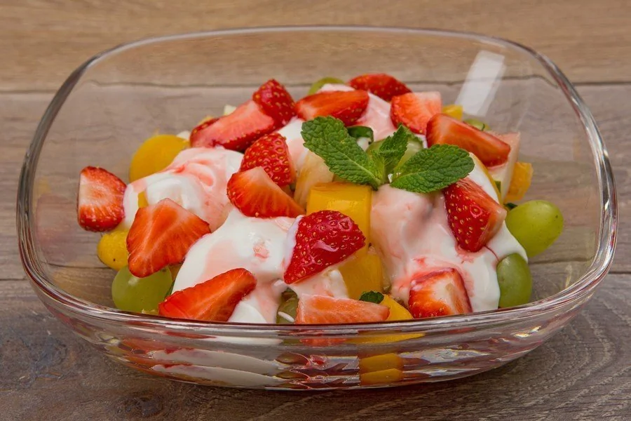 ШАГ 5 Полейте фрукты йогуртом.