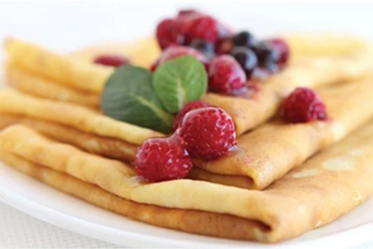 Блинная мука Яйцо куриное Молоко Топленое масло Лимон Кленовый сироп Сахарная пудра Выпечка и десерты Русская кухня Блины