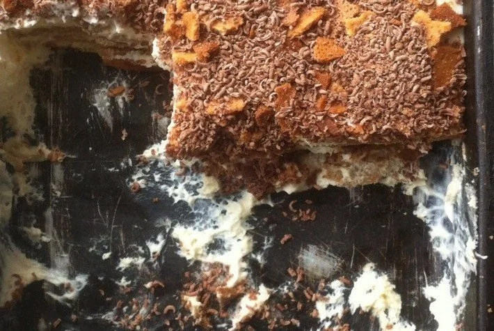 ШАГ 8 Последний слой должен быть крем, на него высыпьте какао.