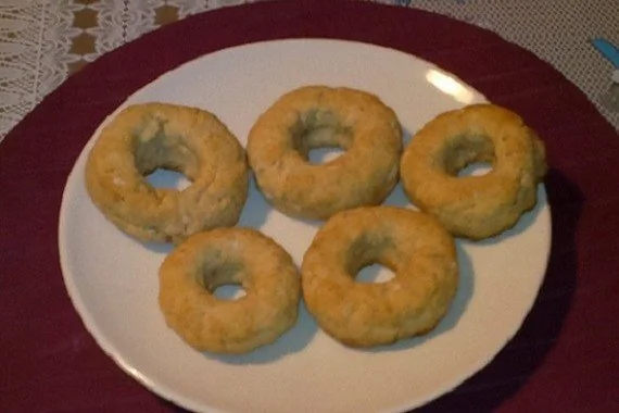 ШАГ 4 Из теста лепим шарики, в середине каждого шарика делаем отверстие и формируем бублики.