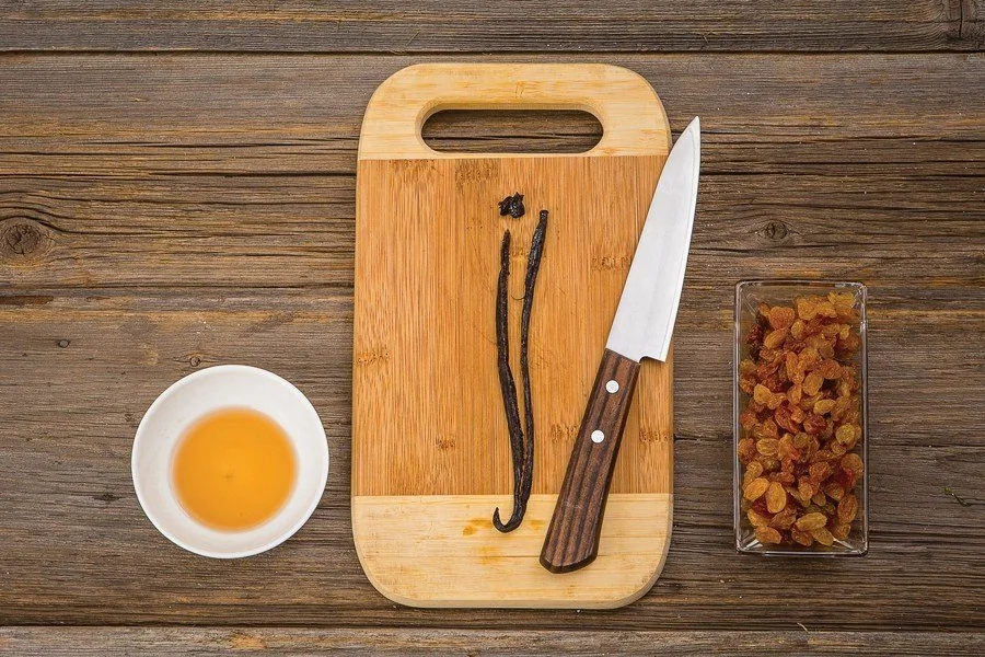 ШАГ 1 Залейте изюм 1/3 амаретто и отставьте; разрежьте стручок ванили вдоль, извлеките семена.