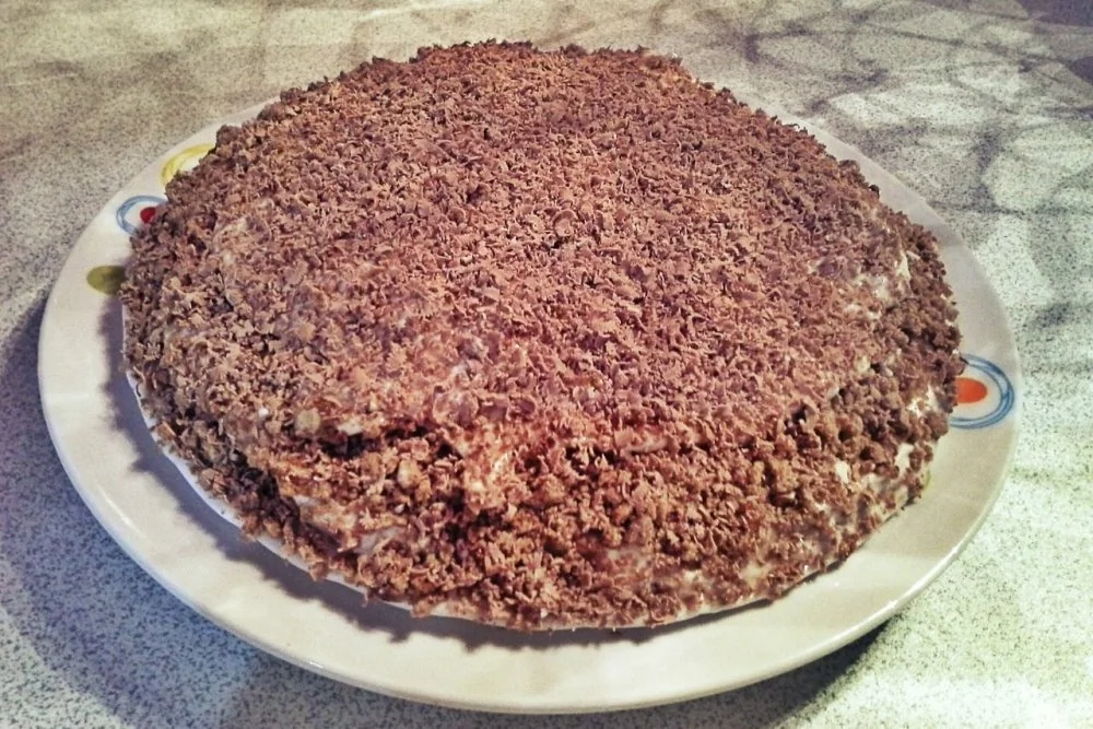 ШАГ 5 Сверху посыпаем шоколадной стружкой и отправляем в холодильник.