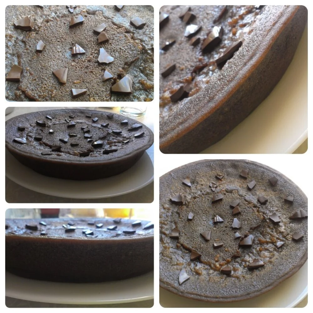 ШАГ 5 Готовый брауни выложить на тарелку, пока он горячий, выложить на него кусочки шоколада.