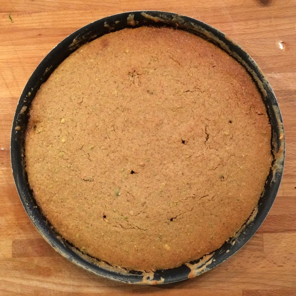 ШАГ 8 Фисташки измельчите в ступке или другим доступным способом в крупную крошку (не в муку) так, чтобы они ощущались вы пироге.