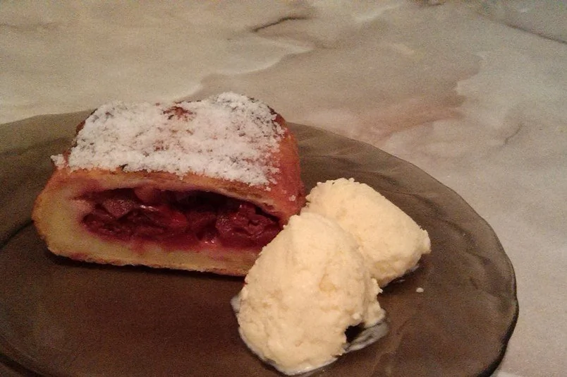 Низкокалорийный штрудель из творожного теста с яблоками и вишней