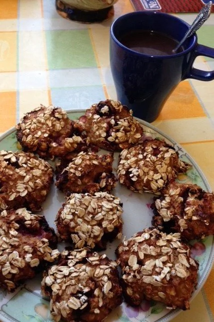 ШАГ 1 Смешать творог, яйцо и около половины овсяных хлопьев, добавить ванильную эссенцию и хорошо перемешать.
