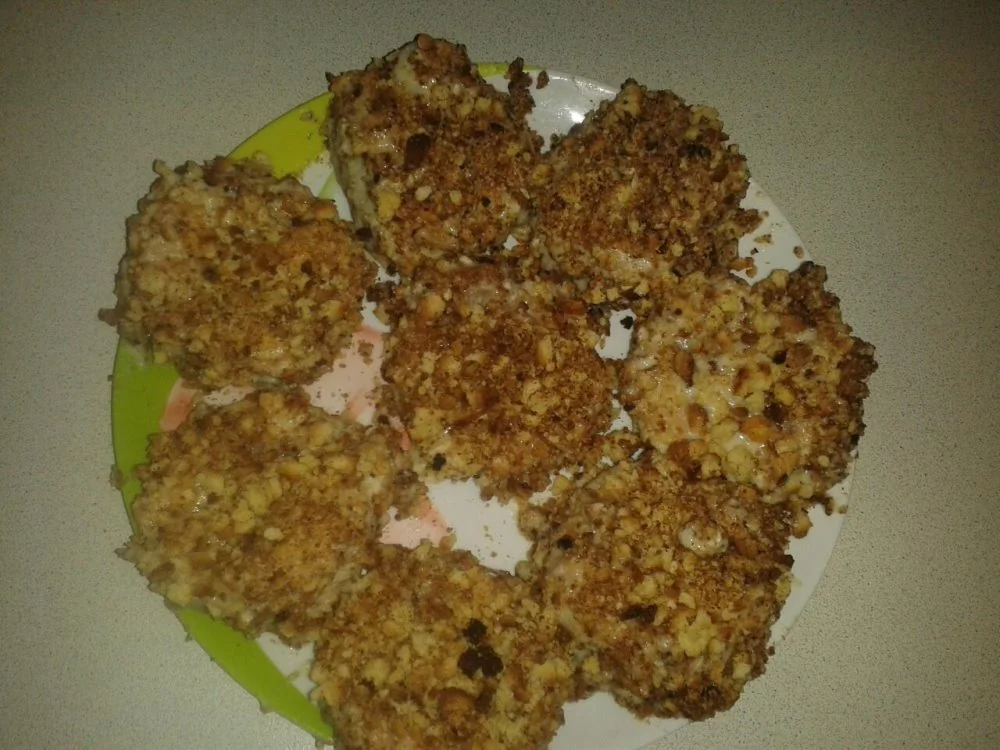 ШАГ 8 Полученные пирожные обмакнуть в крошку. Хорошо оставить на ночь в холодильнике, чтобы пропитались. Но это редко удается.
