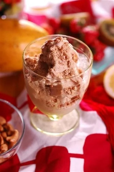 ШАГ 2 Выложить мороженое в десертную вазочку горкой, сверху можно посыпать дроблеными орешками.