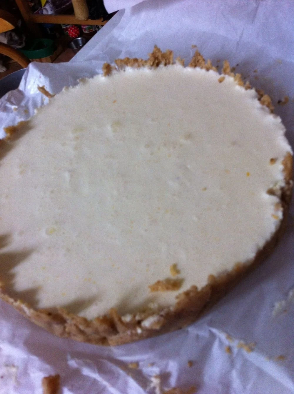 ШАГ 6 Залейте начинку в основу чизкейка и разровняйте ножом. Поставьте в холодильник до застывания, минимум на 4 часа. При подаче аккуратно выньте чизкейк за края пленки.
