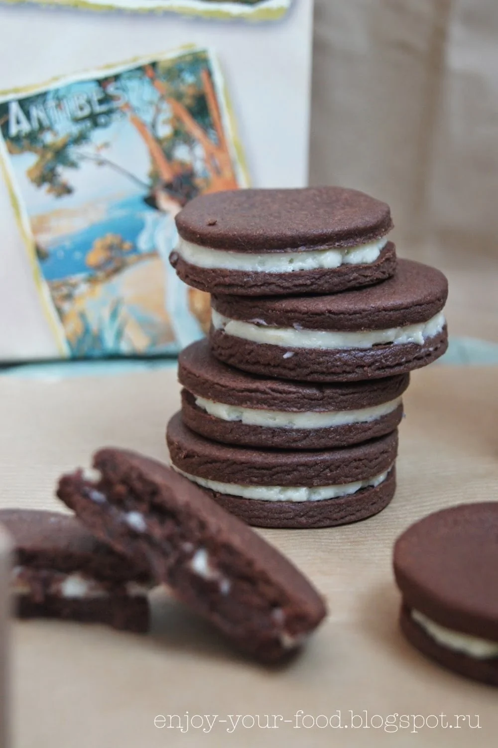 ШАГ 7 Для сборки печенья берем половинку, выкладываем чайной лодкой крем и закрываем второй половинкой.