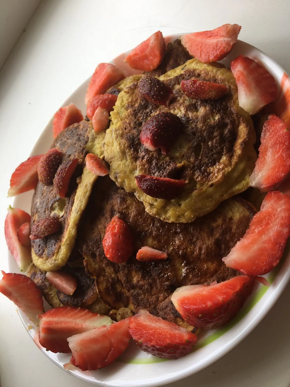 ШАГ 1 Взбить яйца. Отдельно пюрировать банан. Затем смешать обе части. Выпекать на сухой сковороде без масла.